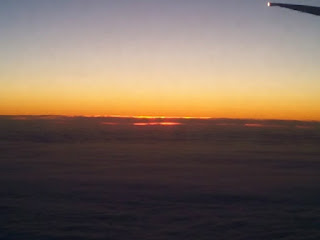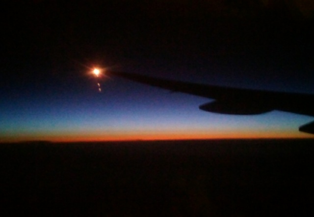 विंग्रजी एक बघायला सुरुवात केली पण मग कंटाळा आला मग बंदच करून टाकलं. न झोपले मस्त विमान प्रवास मात्र छान झाला. मधे दोनदा जरा ढग, हवेच्या पोकळ्यांनी हलवलं, पण इट्स ओके. पायाचे मधूनमधून केलेले व्यायाम आणि चालणं यामुळे पाय एकदम ठिक राहिले. बुटं मात्र अजिबात काढली नाहीत. उशा, शाल दिलेली विमानात सो कंफर्टेबल होतं सगळं. मला नवऱ्या ने समोर भरपूर लेग स्पेसवाली सीट घेऊन दिलेली. सो सगळं छान पार पडलं.