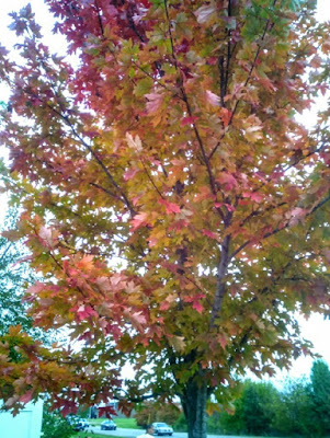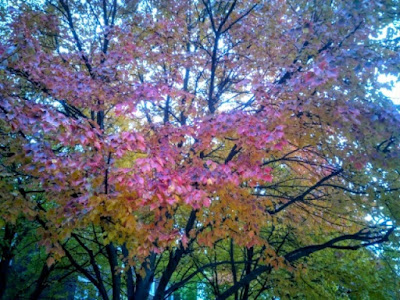 मी शिकागोला उतरले तेव्हा झाडं छान हिरवी होती. थंडी अगदी ओठांवर होती पण सुरु झाली नव्हती. वारं मात्र प्रचंड जोरात अन गारेगार होतं. पण उनही कडक होतं. शिकागो ते कोलंबस प्रवासात बहुतांशी हिरवा रंगच दिसला. ओझरता एके ठिकाणी केशरी रंग दिसलेला. पण कोलंबसला आले अन 2-3 दिवसात छान थंडी पडू लागली. घरा मागच्या झाडांनी भराभर रंगीत वस्त्र परिधान करायला सुरुवात केली :)