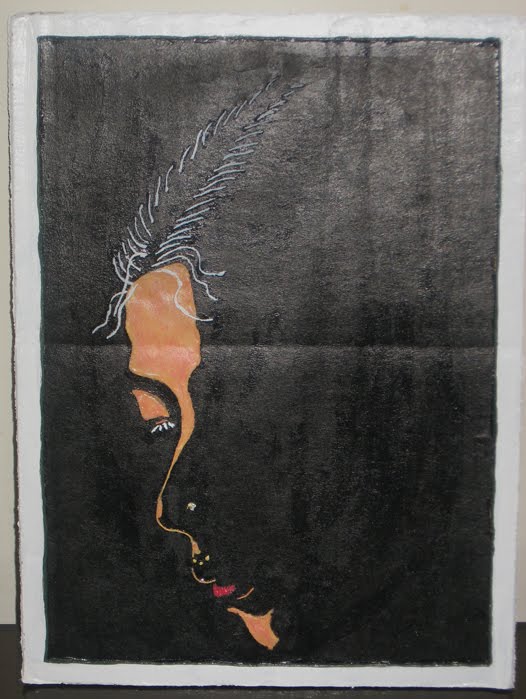 हे एका मित्रासाठी. थर्माकोल वरती टॉईन दोरा, रांगोळी, रंग वापरून.