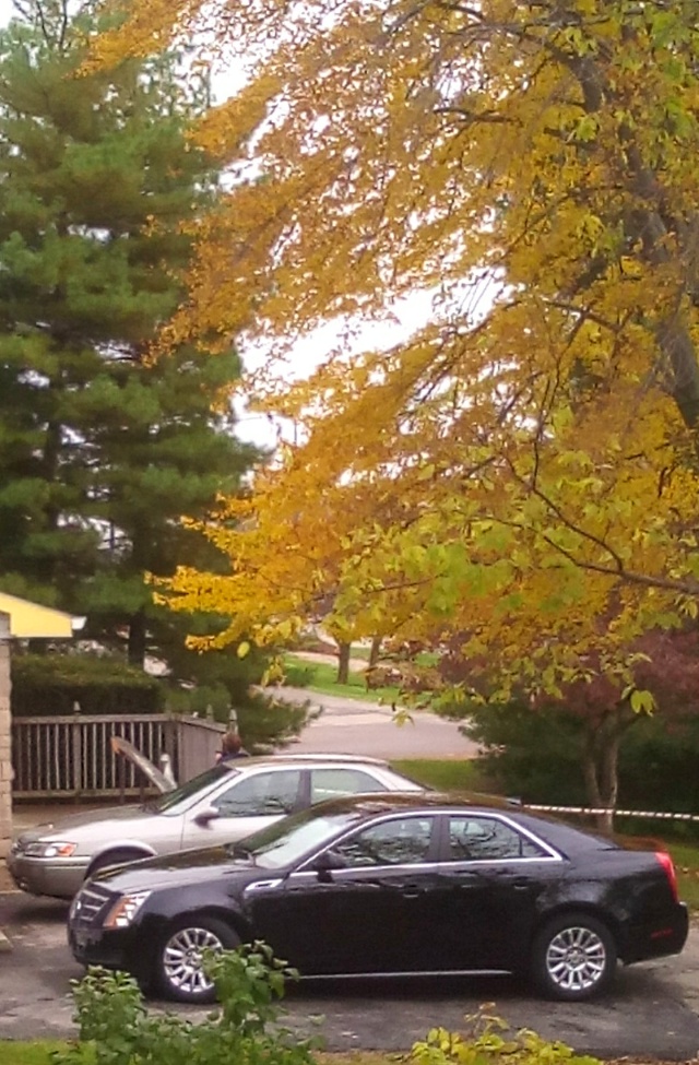 मी शिकागोला उतरले तेव्हा झाडं छान हिरवी होती. थंडी अगदी ओठांवर होती पण सुरु झाली नव्हती. वारं मात्र प्रचंड जोरात अन गारेगार होतं. पण उनही कडक होतं. शिकागो ते कोलंबस प्रवासात बहुतांशी हिरवा रंगच दिसला. ओझरता एके ठिकाणी केशरी रंग दिसलेला. पण कोलंबसला आले अन 2-3 दिवसात छान थंडी पडू लागली. घरा मागच्या झाडांनी भराभर रंगीत वस्त्र परिधान करायला सुरुवात केली :)