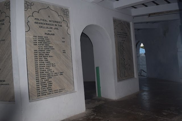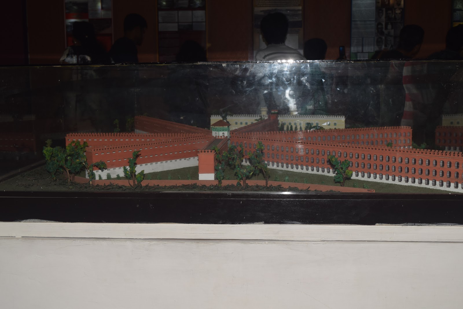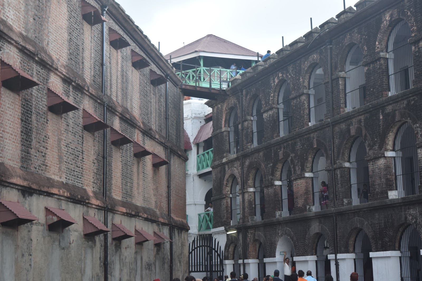 सेल्युलर जेल च मुळ स्वरुप सात आरे असलेल्या स्टार फिश सारखं होतं. त्यातले तीनच आरे उभे आहेत. एका आर्याच्या जागी सरकारी इस्पितळ उभं आहे. मधल्या मनोर्याच्या खांबांवर तिथे असलेल्या सगळ्या कैद्यांची नावं आहेत. या इमारतींची रचना अशी होती की एका इमारतीतल्या कैद्यांना समोरचे कैदी दिसू नयेत. फोटोत व्हरांड्यासमोर समोरच्या खिडक्या दिसतायेत. त्या खिडक्यांनाही
