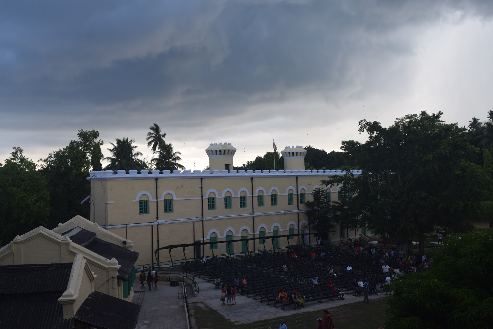 उतरती छपरे. आणि खोलीत त्याही उंचावर. म्हणजे फक्त उजेड आणि हवा थोडीफार येणार. काळ्या पाण्याची शिक्षा... आणि या इमारती कैद्यांकडूनच बांधून घेतल्या होत्या.