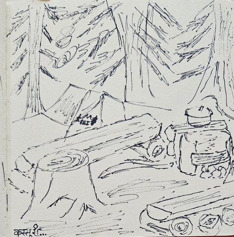 मग गप्पा, चहा-कॉफी करता करता एकीकडे मी नेलेल्या स्केचबुक मध्ये मी काही स्केचेस काढली. कस्तोनी माझ्या स्केचेस ची तारीफ चालू केल्याबरोबर तिलाही स्केचिंगला बसवले. तिने कसलं भारी स्केच काढलं!