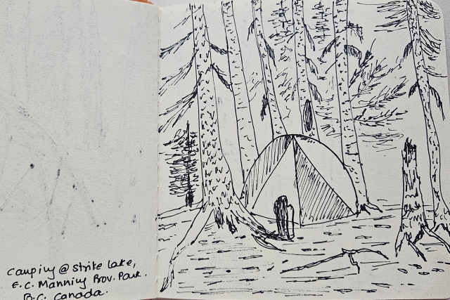 कस्तो रहात असलेल्या व्हॅनकुव्हर शहरापासून २-२.५ तासावर असलेल्या एका जंगलात (E. C. Manning Provincial Park) जायचं ठरलं. बालवाडीतल्या माझ्याकरीता - हायकिंग्/क्लाईंबिंग Ph. D. असलेल्या मि. कस्तोंनी एक साधा-सरळ-सोप्पा हाईक निवडला. ४ मैल (बहुतांश सपाट!) चालत जाऊन strike lake कँपसाईट वर जाऊन तंबू ठोकायचे ठरवले.